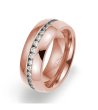 Inel elegant de damă cu pietre strălucitoare situate în mijlocul bijuteriei, creând un sentiment de rafinament.