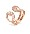 Inel elegant de damă cu un design unic și elemente decorative strălucitoare. Forma sa se distinge prin linii curbate care îi conferă un aspect sofisticat.
