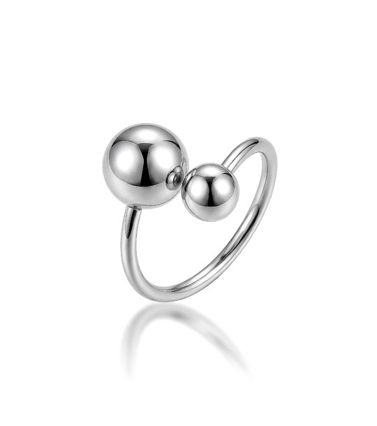 Inel de damă din oțel argintiu cu două sfere