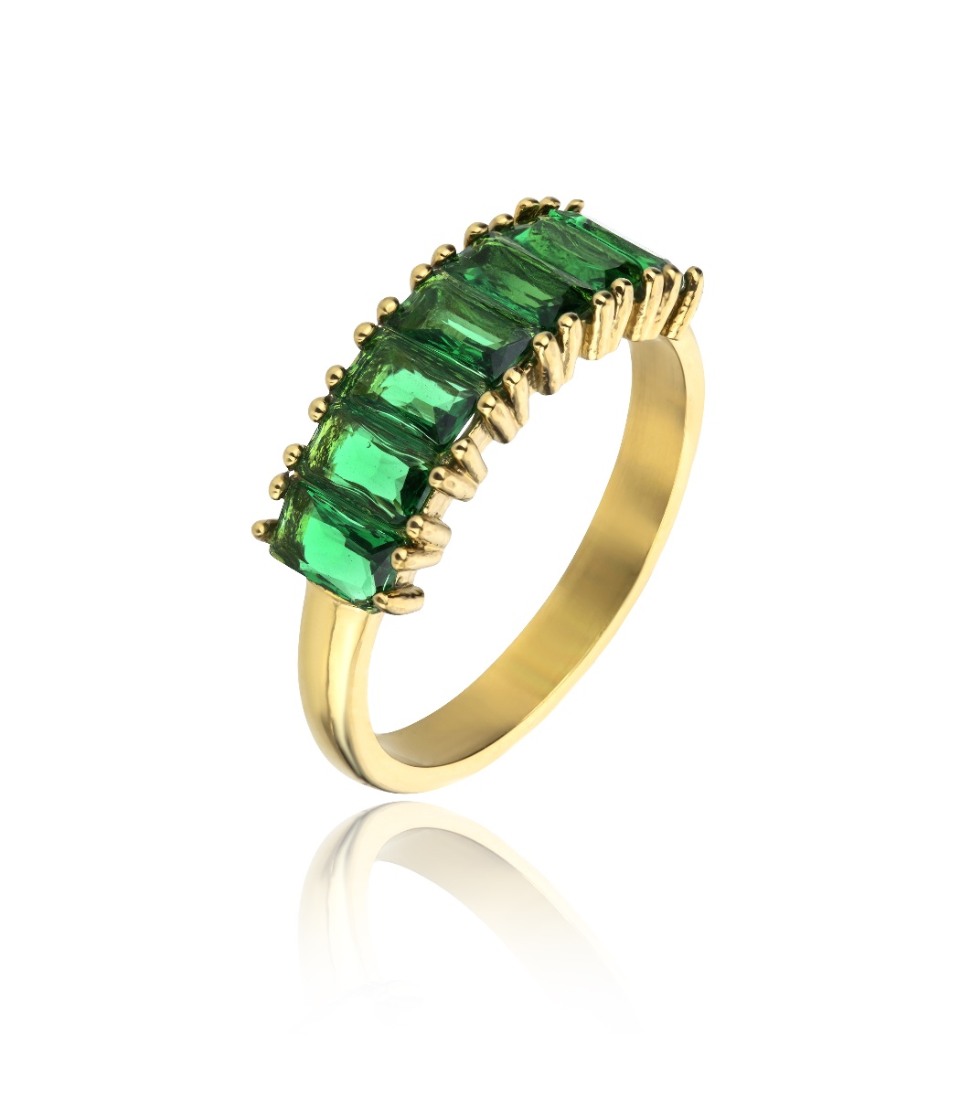 Inel de damă placat cu aur cu cristale verzi Leila, mărimea M