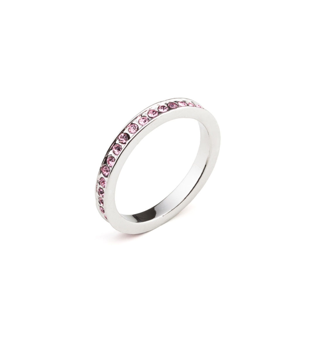 Inel de dama placat cu aur alb si cristale Swarovski roz marimea S