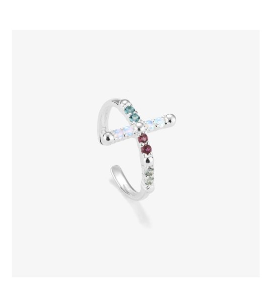 Inel elegant cu design în formă de cruce, decorat cu pietre colorate. Potrivit pentru diverse ocazii.