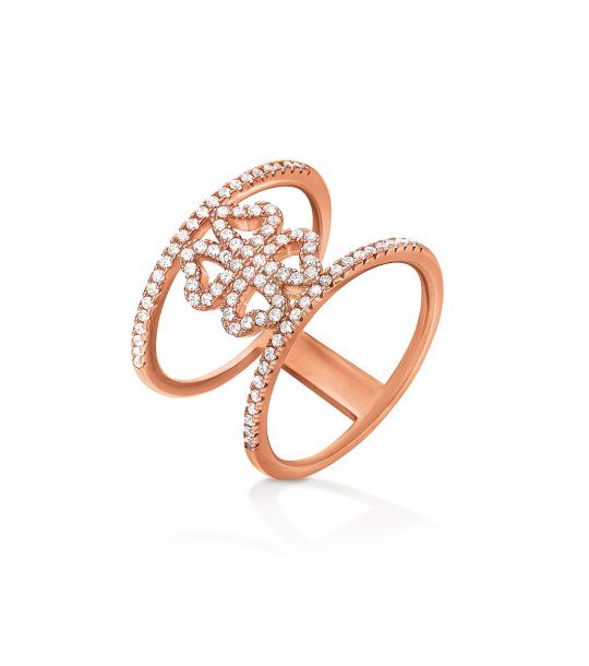 Inel elegant cu un design sofisticat și ornamente bogate. Forma sa este unică, combinând două elemente rotunde conectate printr-un motiv decorativ. Potrivit pentru ocazii speciale și pentru uz zilnic.