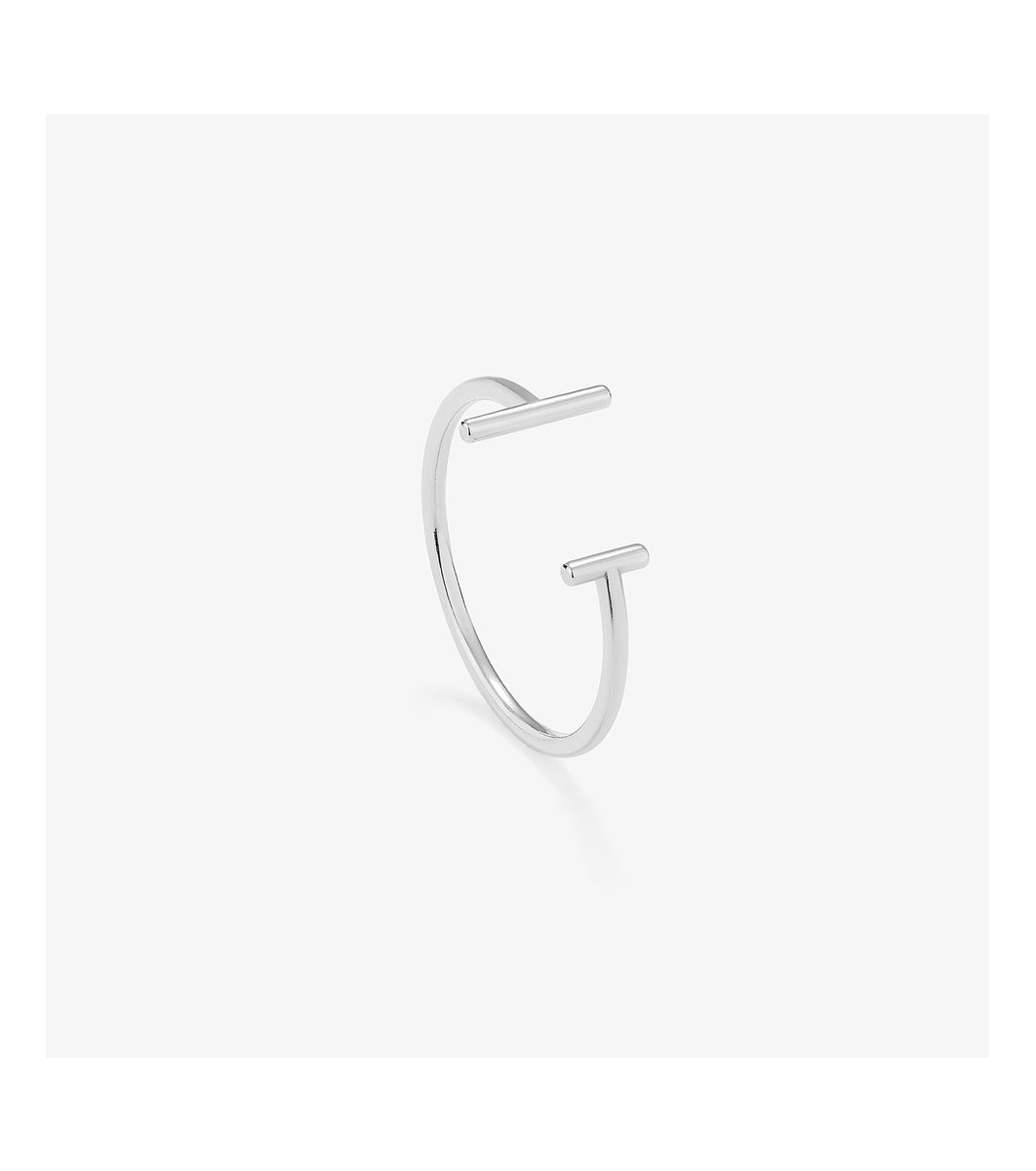 Acest inel are un design modern și minimalist. Se distinge printr-o formă deschisă și două elemente paralele la capete.