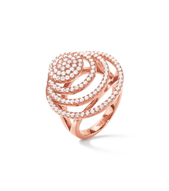 Un inel circular decorat cu numeroase elemente mici strălucitoare. Designul este compus din mai multe cercuri concentrice care creează un efect vizual interesant.