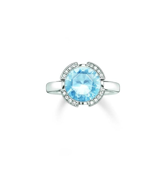 Inel elegant cu o piatră rotundă centrală, înconjurată de mici accente strălucitoare. Potrivit pentru ocazii speciale.