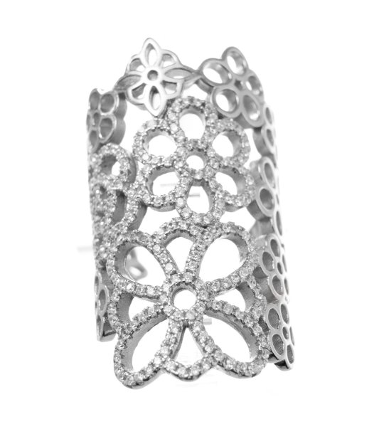Inel elegant pentru femei cu un motiv floral complex. Inelul are o structură deschisă care conferă lejeritate designului. Potrivit pentru diverse ocazii, adăugând strălucire și stil.