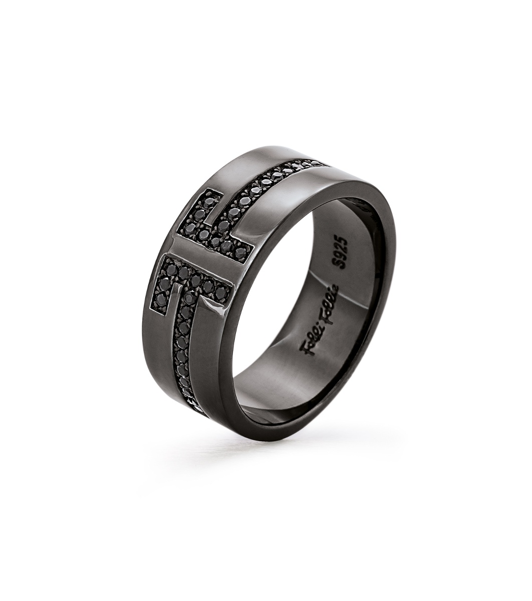 Inel elegant cu design în relief, potrivit pentru femei. Are incrustații decorative cu motiv geometric.