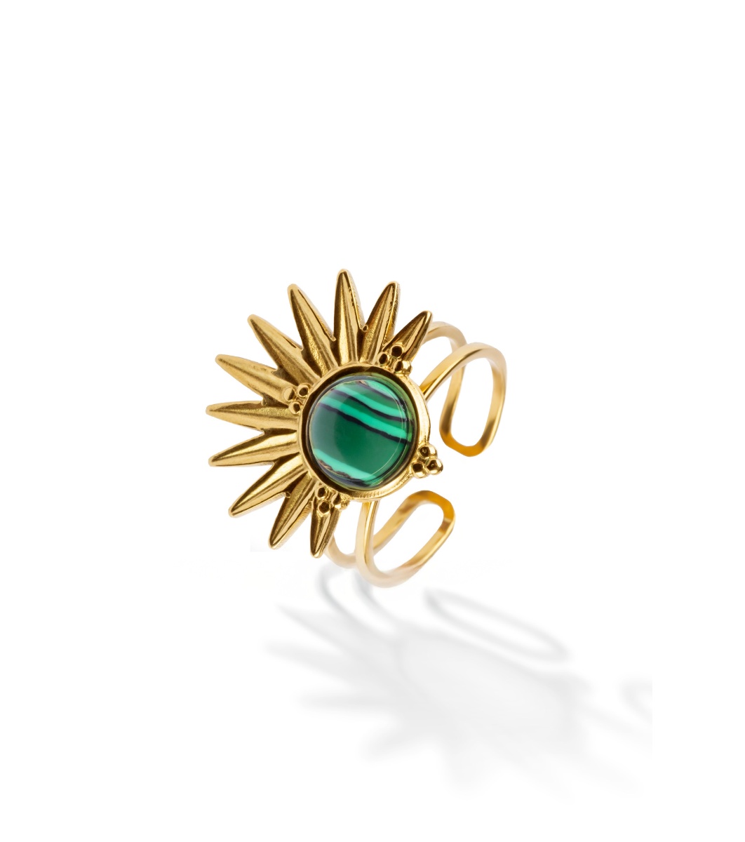 Emily Westwood Inel spectaculos de damă cu element de sidef din smarald Inel placat cu aur de 18 carate