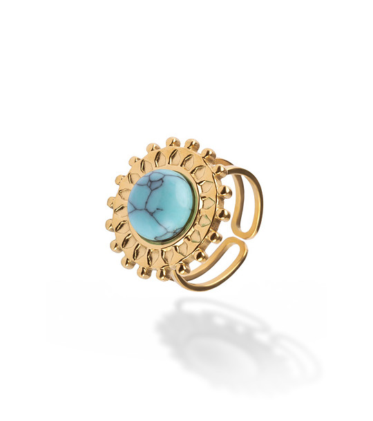 Inel spectaculos de damă cu piatră albastră