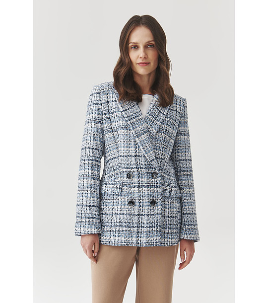 Jachetă de damă cu siluetă dreaptă și lungime până la șold.