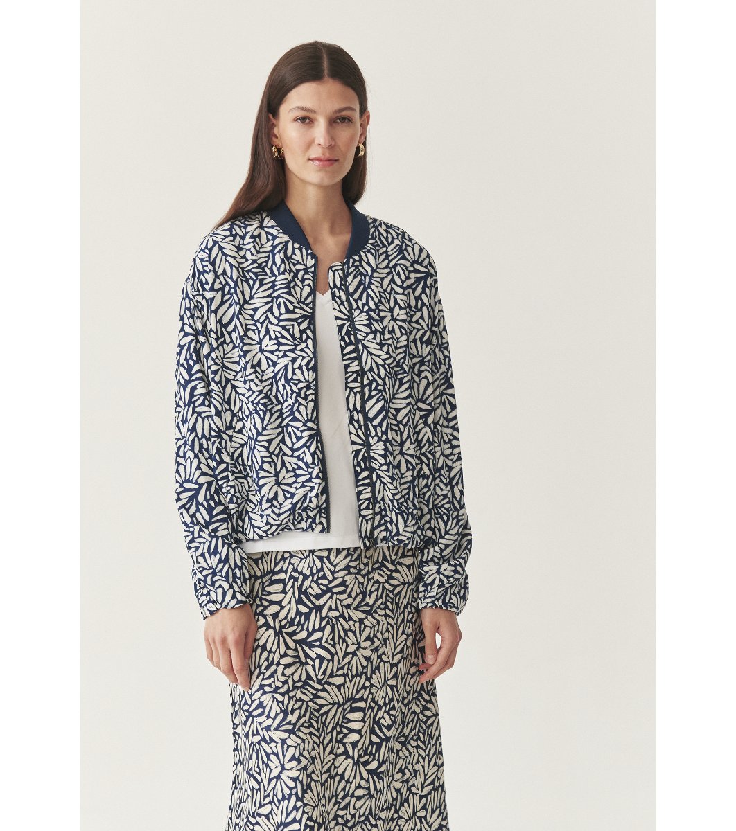 Jachetă albastru închis cu imprimeu cu frunze Sini
