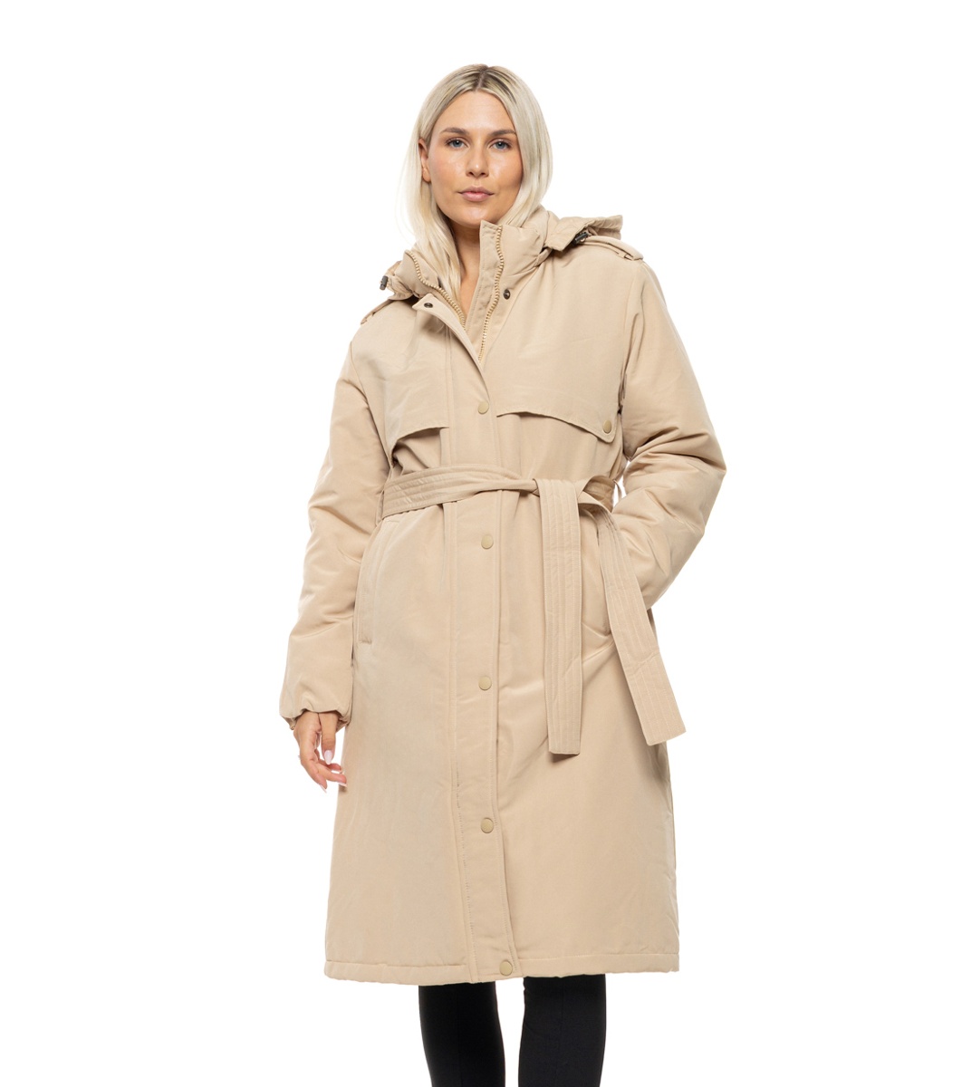 Splendid Jachetă bej cu glugă Emala Parka lungă de damă cu glugă încorporată