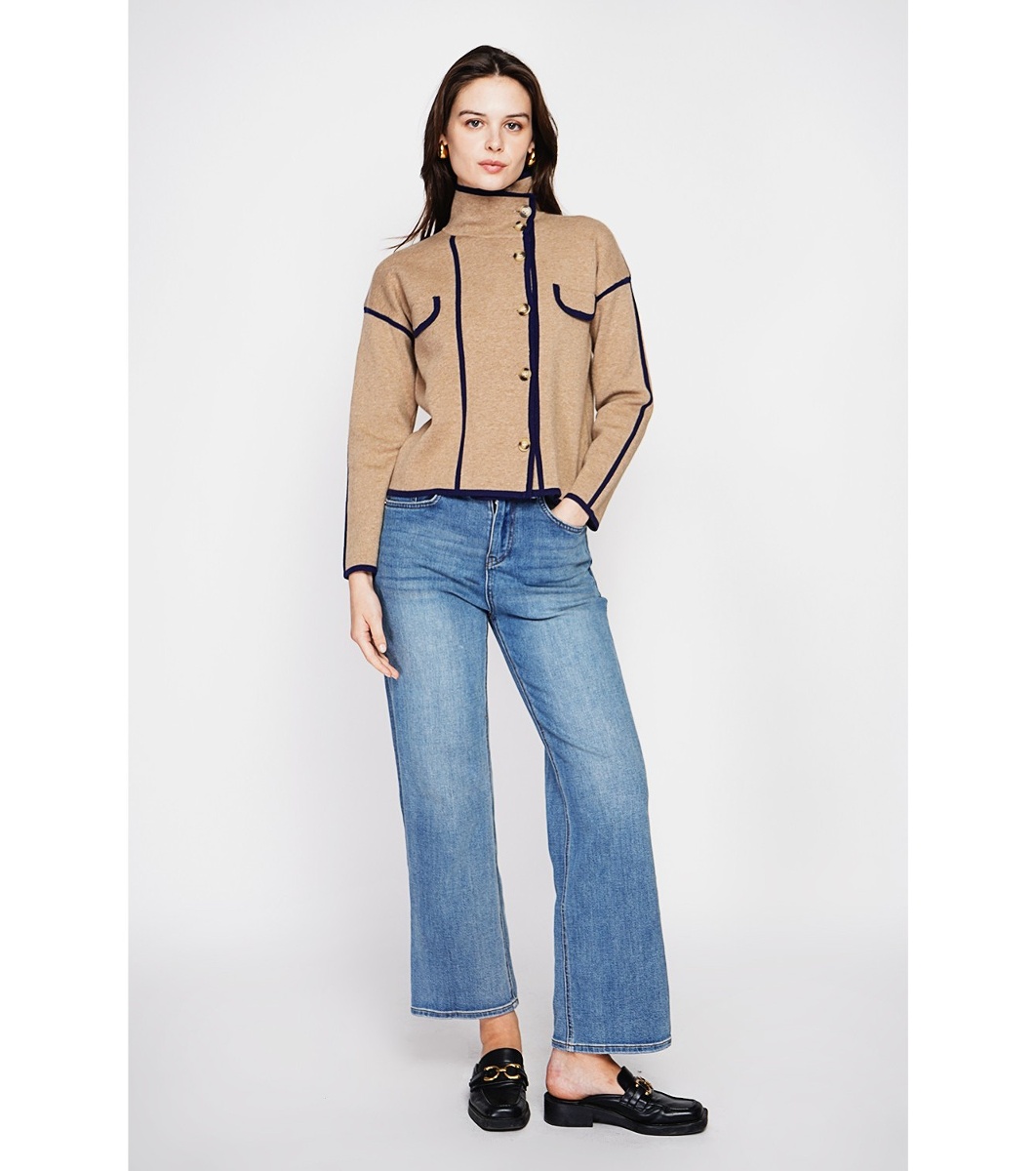 C&Jo Jachetă bej de damă cu garnitură neagră Guler înalt