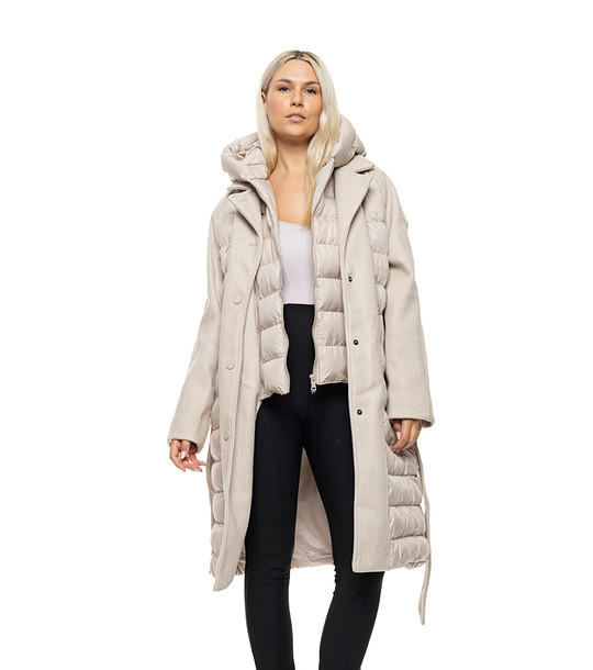 Biston Jachetă bej deschis cu glugă pentru femei Daysie Jachetă lungă matlasată cu linie dreaptă