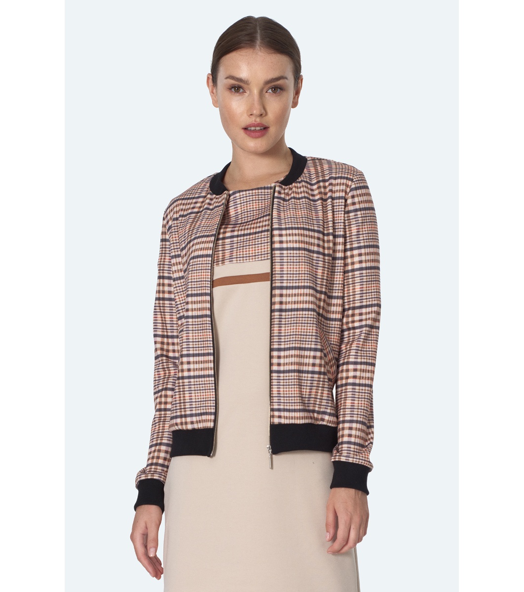 Jachetă bomber bej în carouri pentru femei