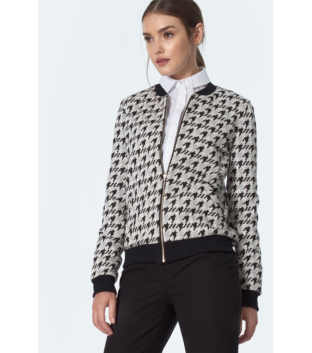 Nife Jachetă bomber de damă bej și negru cu peplum Decolteu rotund