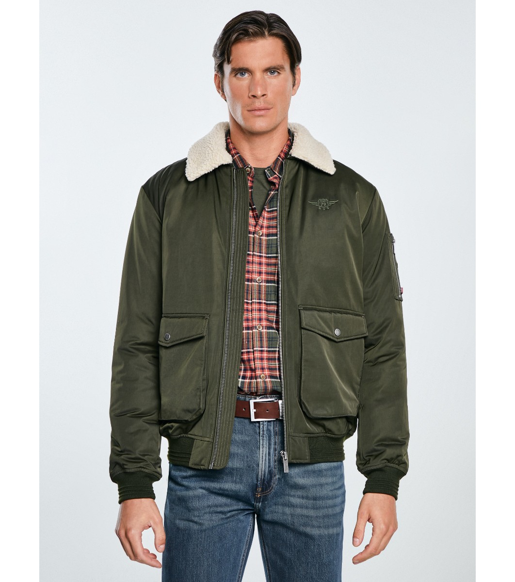Big Star Jachetă bomber verde pentru bărbați cu guler detașabil GETNEW Jachetă bomber pentru bărbați cu fermoar frontal