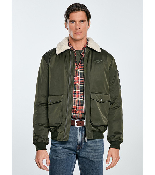 Jachetă bomber verde pentru bărbați cu guler detașabil GETNEW