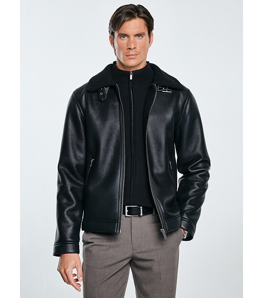 Jachetă bărbătească NIMO neagră cu guler din astrahan