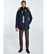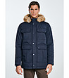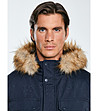 Jachetă bărbătească albastru închis cu glugă și guler din puf KINGSLEY
