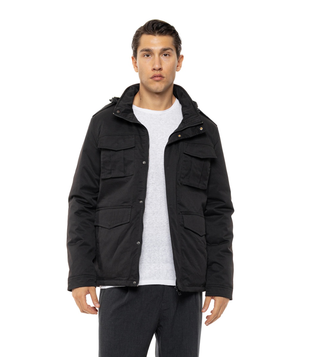 Biston Jachetă bărbătească neagră cu glugă Allan Jachetă scurtă cu croială dreaptă