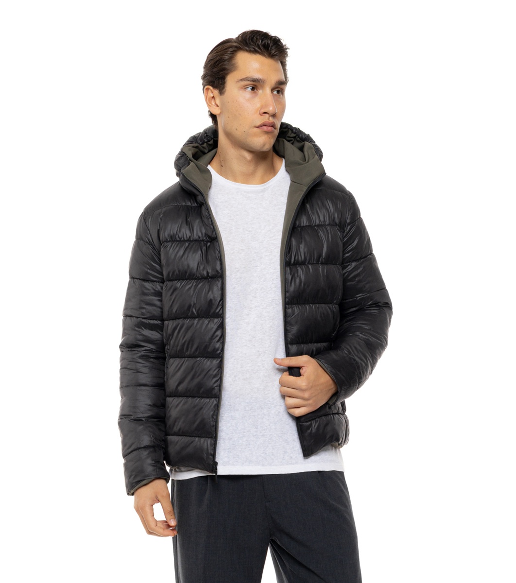 Splendid Jachetă bărbătească reversibilă cu glugă, în culorile kaki și negru. Hank Model cu croială dreaptă, cu conținut ridicat de bumbac.