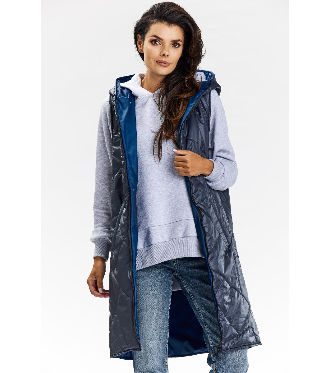 Awama Jachetă călduroasă pentru femei, cu două fețe, în nuanțe de albastru închis Jachetă călduroasă cu glugă