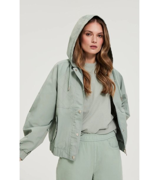 Jachetă cu glugă verde măsliniu pentru femei
