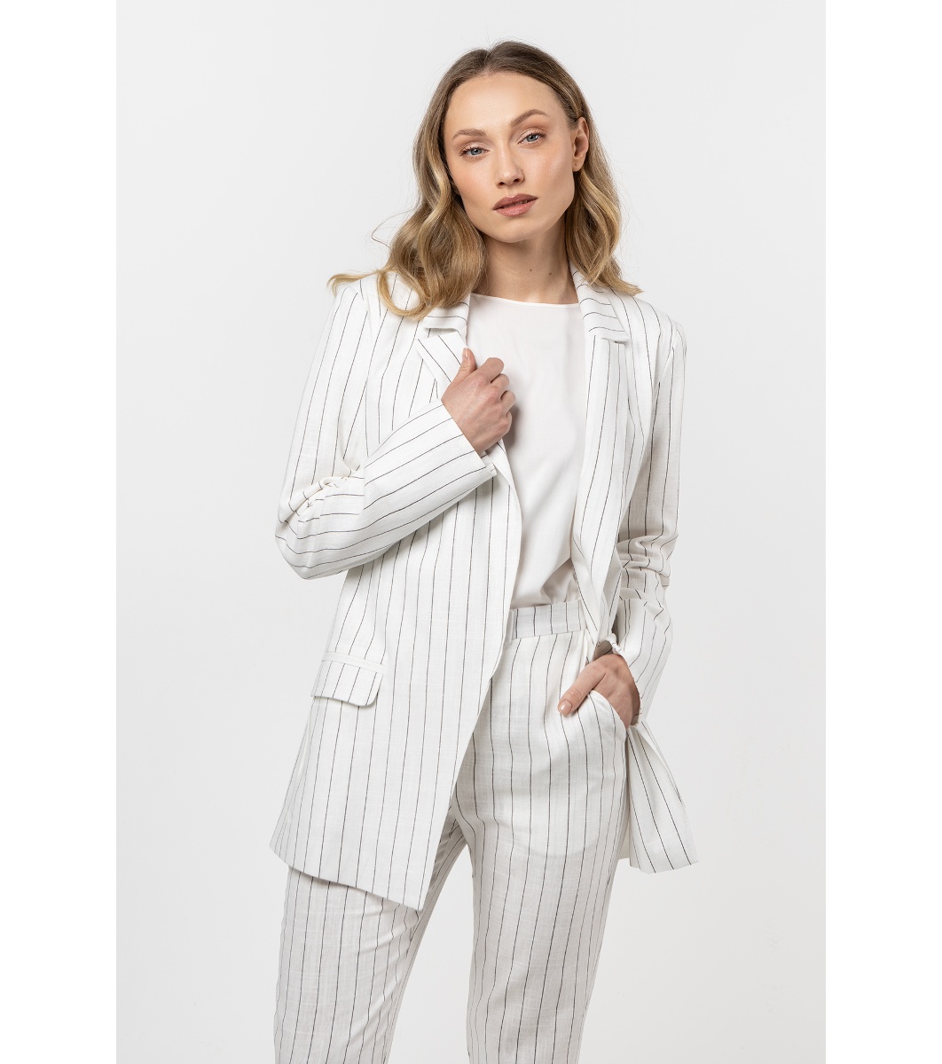 Awama Jachetă de damă cu dungi de culoare crem Olla Guler și revere