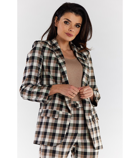 Awama Jachetă de damă în carouri, maro și bej, Vika Guler și revere