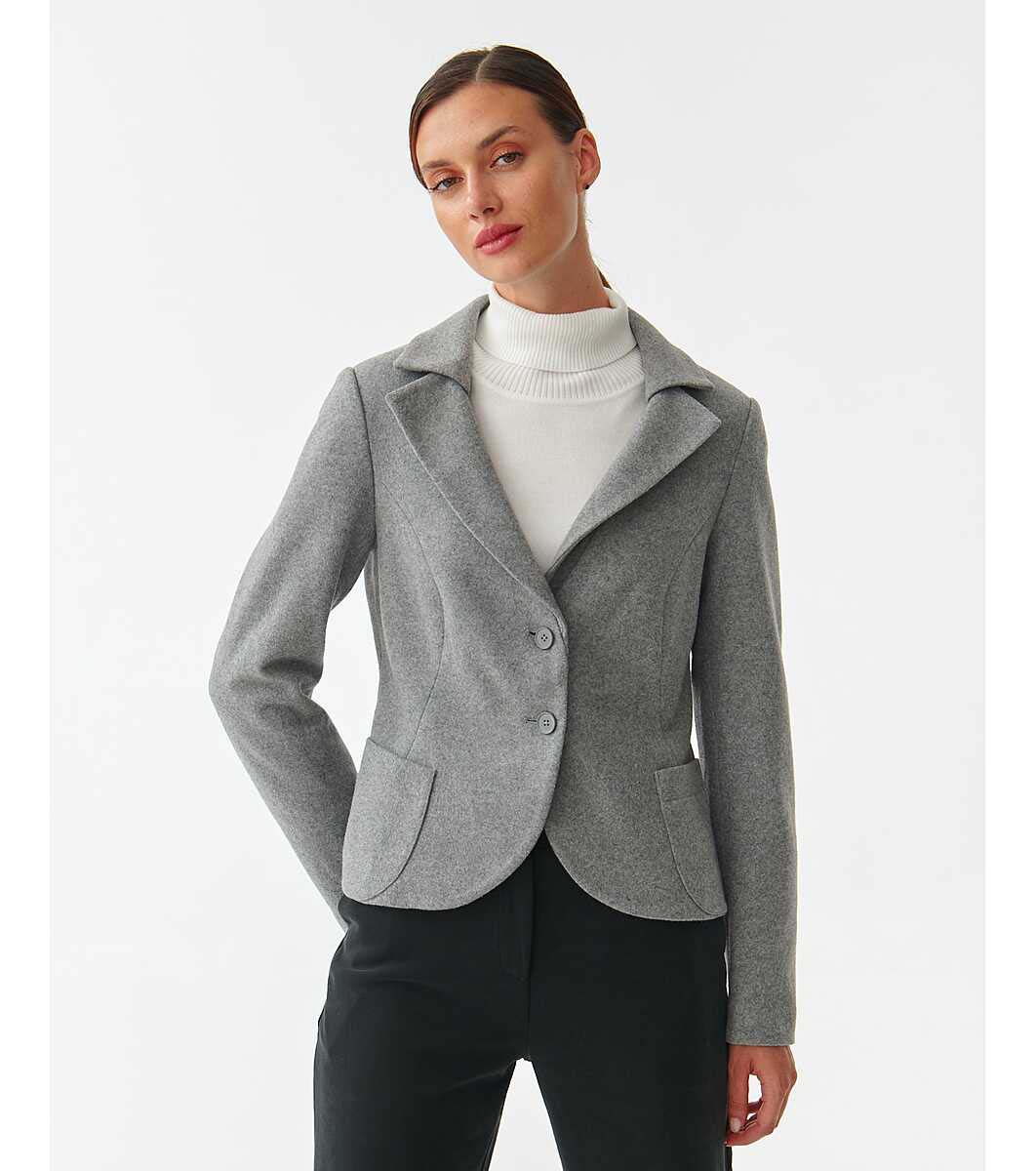 Tatuum Jachetă de damă scurtă gri cu lână Coco Guler și revere