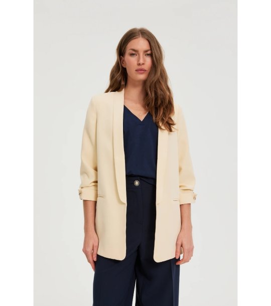 Jachetă galben deschis pentru femei, cu mâneci suflecate