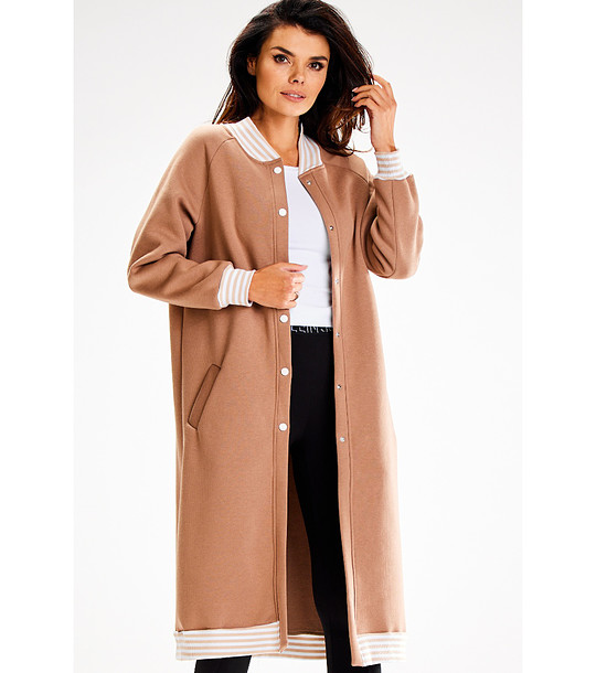 Awama Jachetă lungă bej din bumbac Mâneci lungi