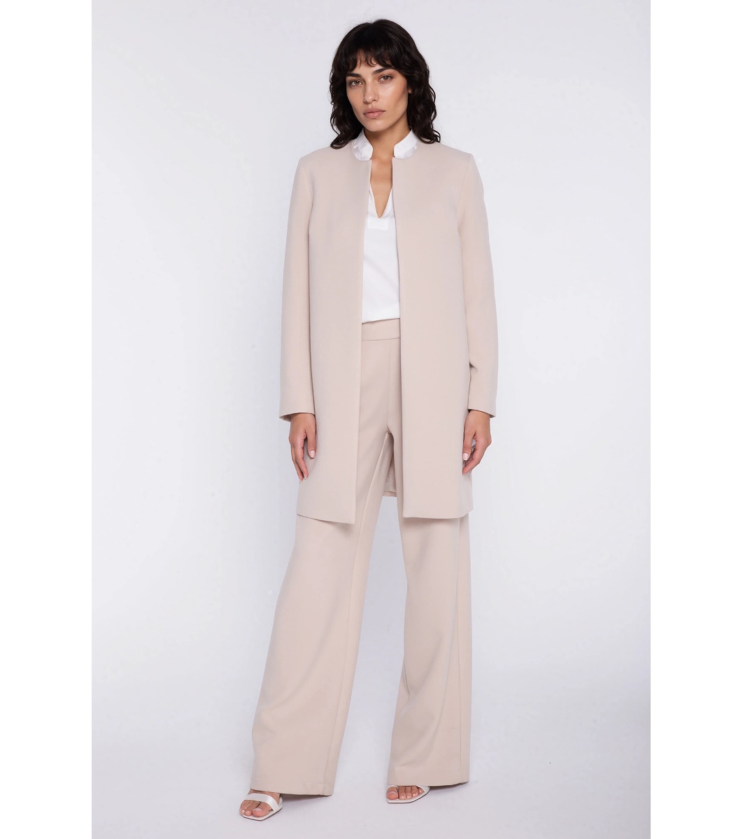 Nife Jachetă lungă bej, fără nasturi Siluetă dreaptă, cu lungime până la mijlocul coapsei.