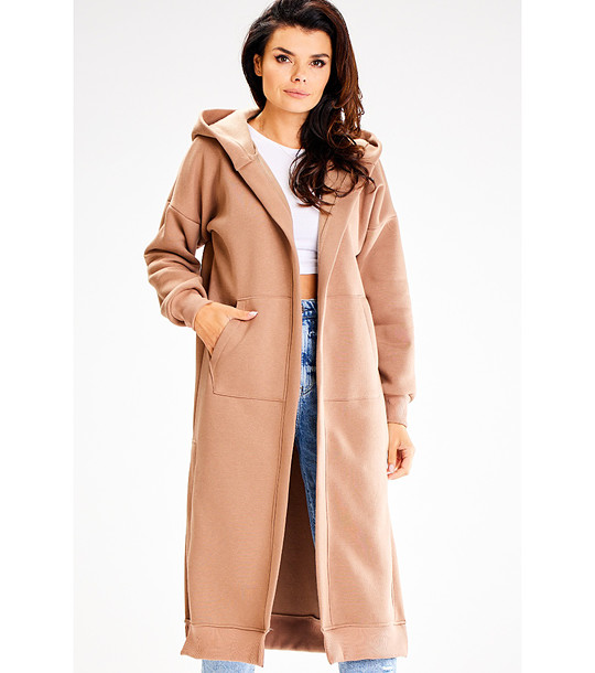 Awama Jachetă lungă de damă, bej, din bumbac, cu glugă Mâneci lungi