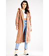 Jachetă lungă de damă, bej, din bumbac, cu glugă