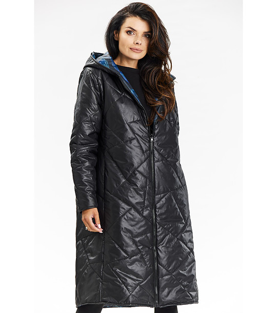 Awama Jachetă lungă de damă, neagră și albastră, cu două fețe Jachetă cu glugă