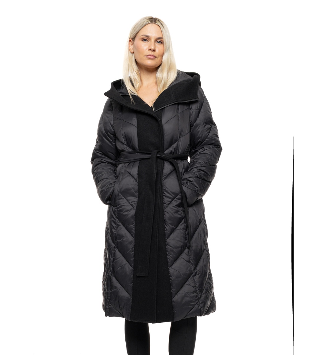 Splendid Jachetă lungă neagră cu glugă Tola Jachetă lungă matlasată cu cusături diagonale