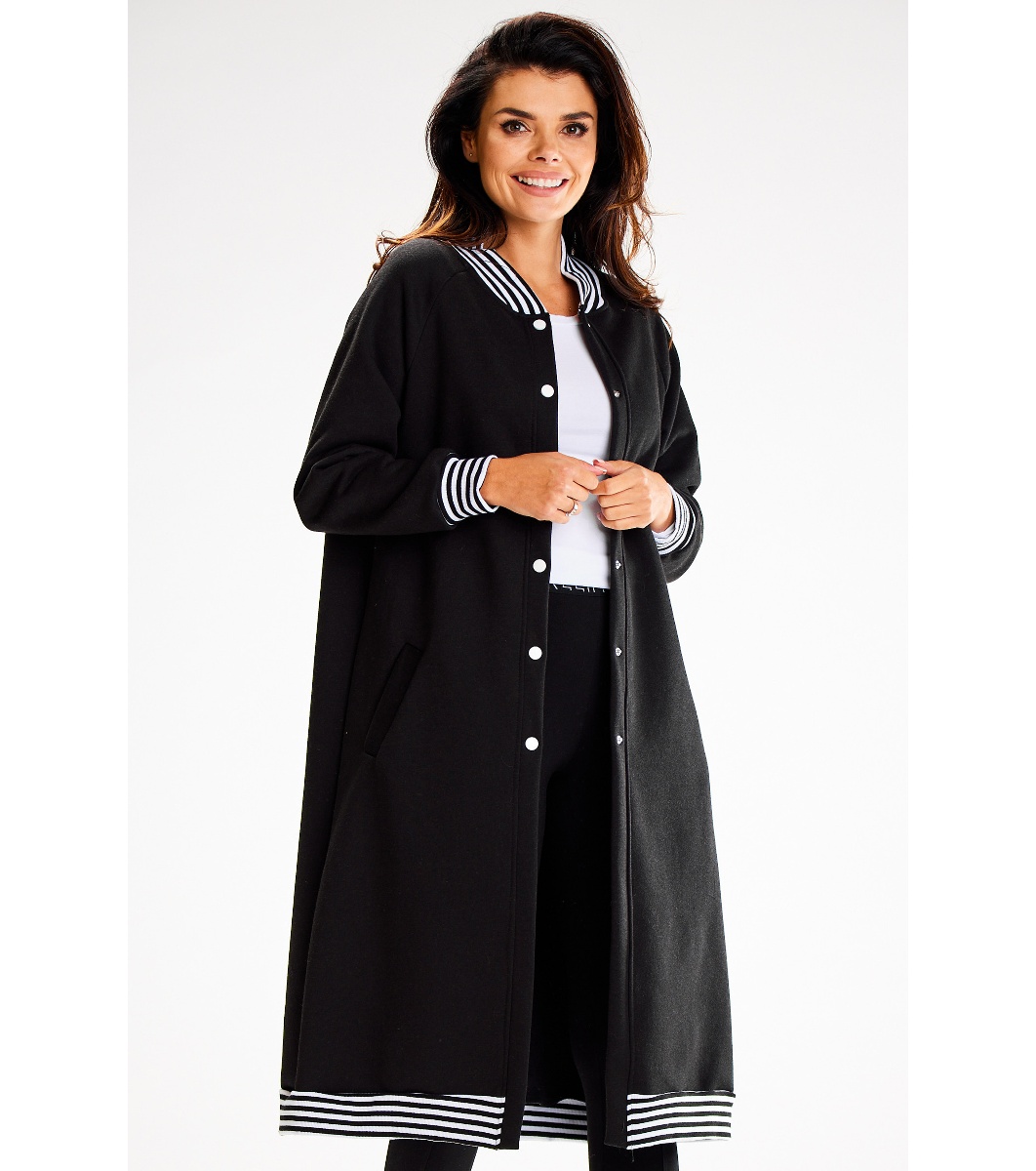 Awama Jachetă lungă neagră din bumbac Mâneci lungi