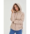 Moodo Jachetă matlasată bej cu glugă Jachetă matlasată scurtă cu fermoar frontal