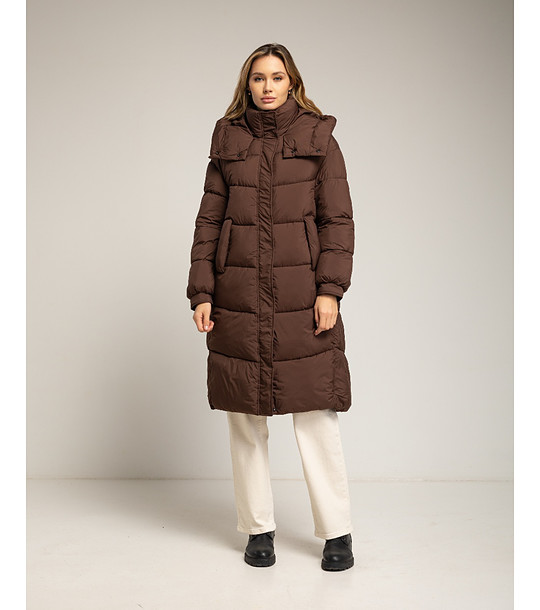 Tantra Jachetă matlasată maro pentru femei Palton lung matlasat cu croială dreaptă
