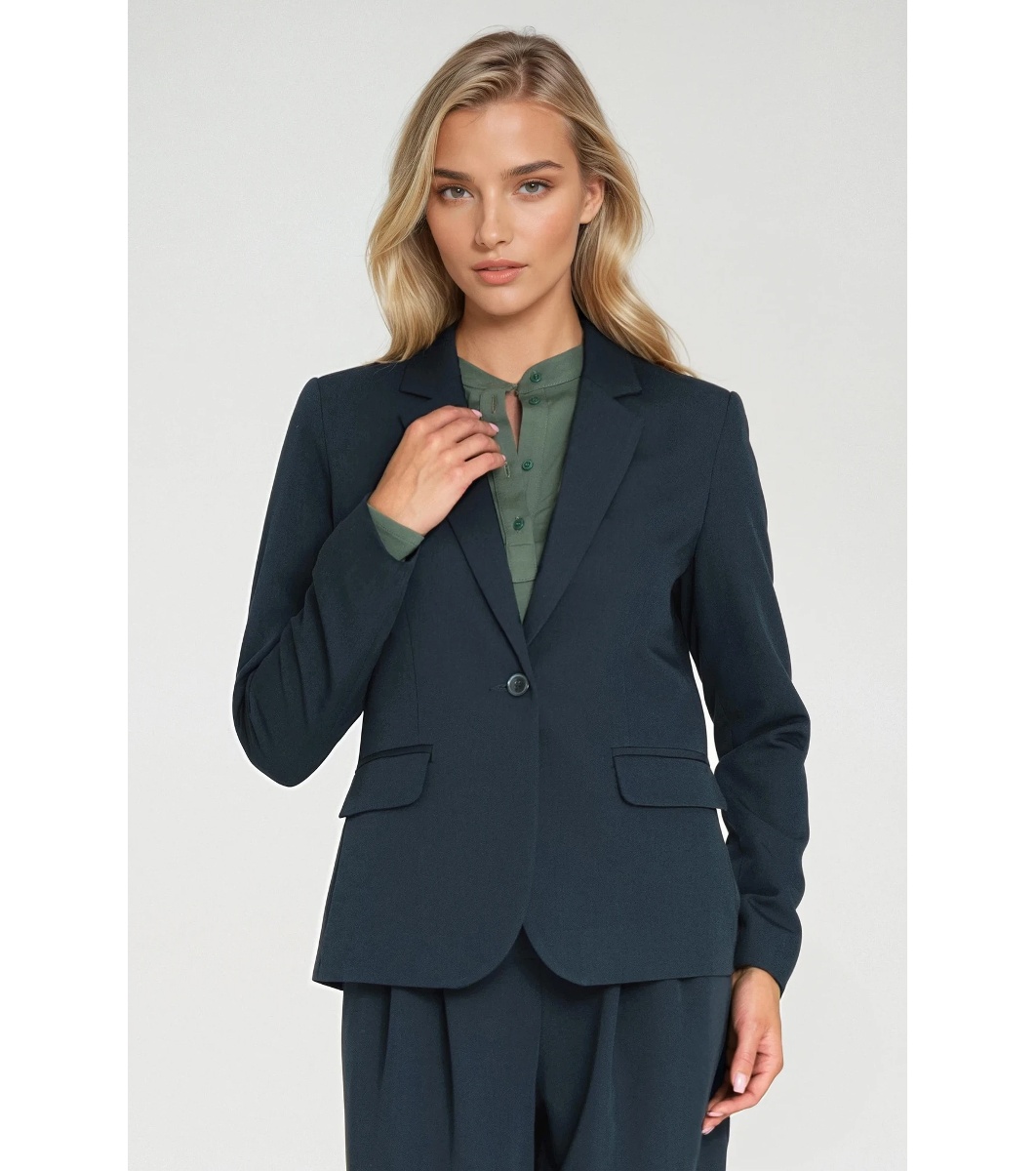 Nife Jachetă mulată pentru femei, bleumarin Guler și revere