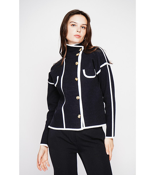 C&Jo Jachetă neagră de damă cu garnitură albă Guler înalt