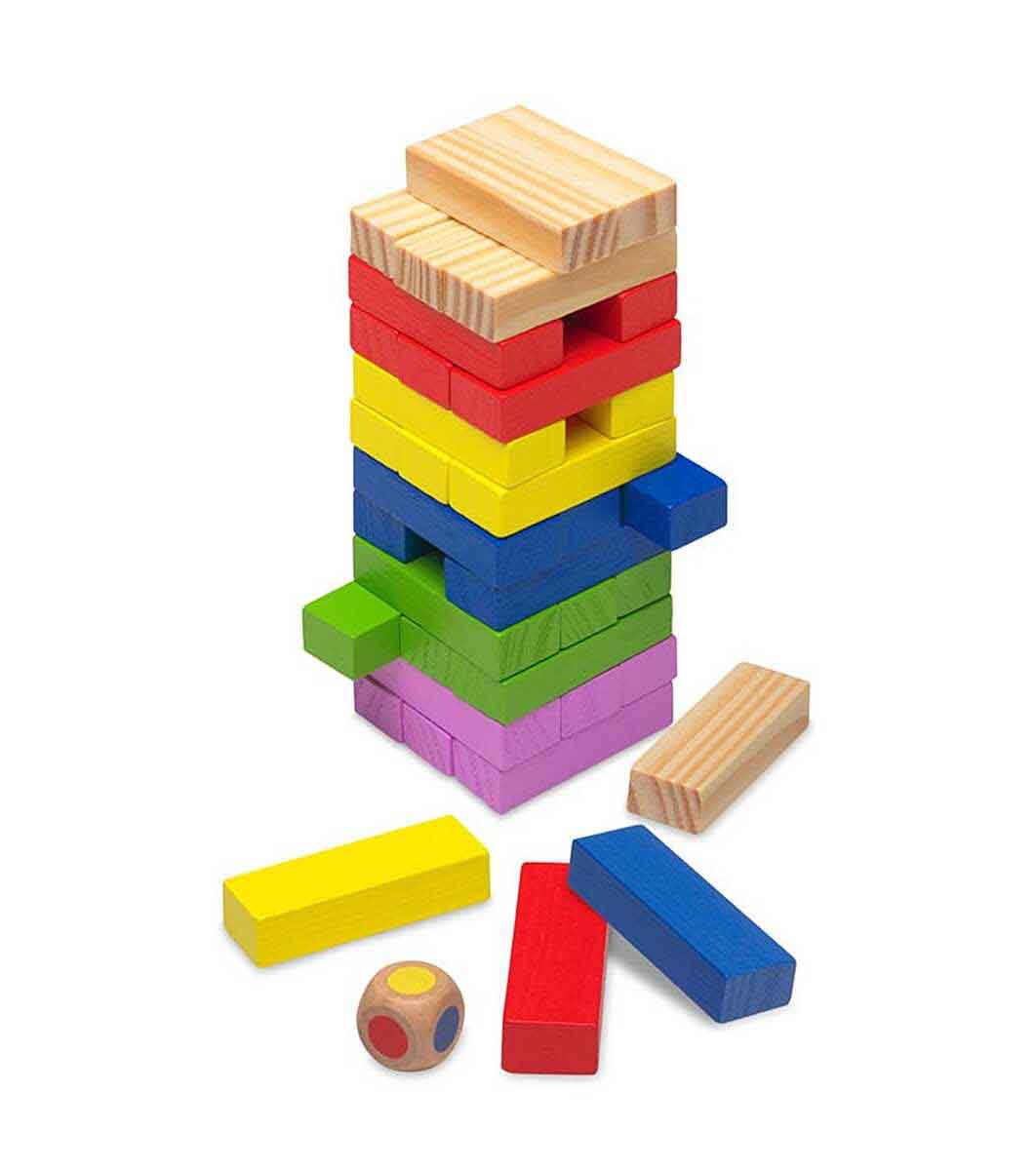 Jocul ajută la dezvoltarea abilităților motorii fine, coordonarea mână-ochi, ajută la determinare, precum și la înțelegerea echilibrului și a greutății, precum și a gândirii logice. Elementele din joc sunt din lemn de înaltă calitate. Unele blocuri sunt vopsite în culori frumoase, strălucitoare, în timp ce altele sunt într-o culoare naturală a lemnului, ceea ce face jocul cu adevărat atractiv. Regulile jocului nu sunt complicate, trebuie să aranjați un turn și apoi să aruncați zarurile. Scoateți un bloc din partea de jos a turnului, în funcție de culoarea pe care ați aruncat-o pe zaruri și puneți-l deasupra. Jucați jocul cu o singură mână și aveți grijă să nu împingeți turnul. Jucătorul care dărâmă turnul pierde jocul. Un joc distractiv pentru copii!