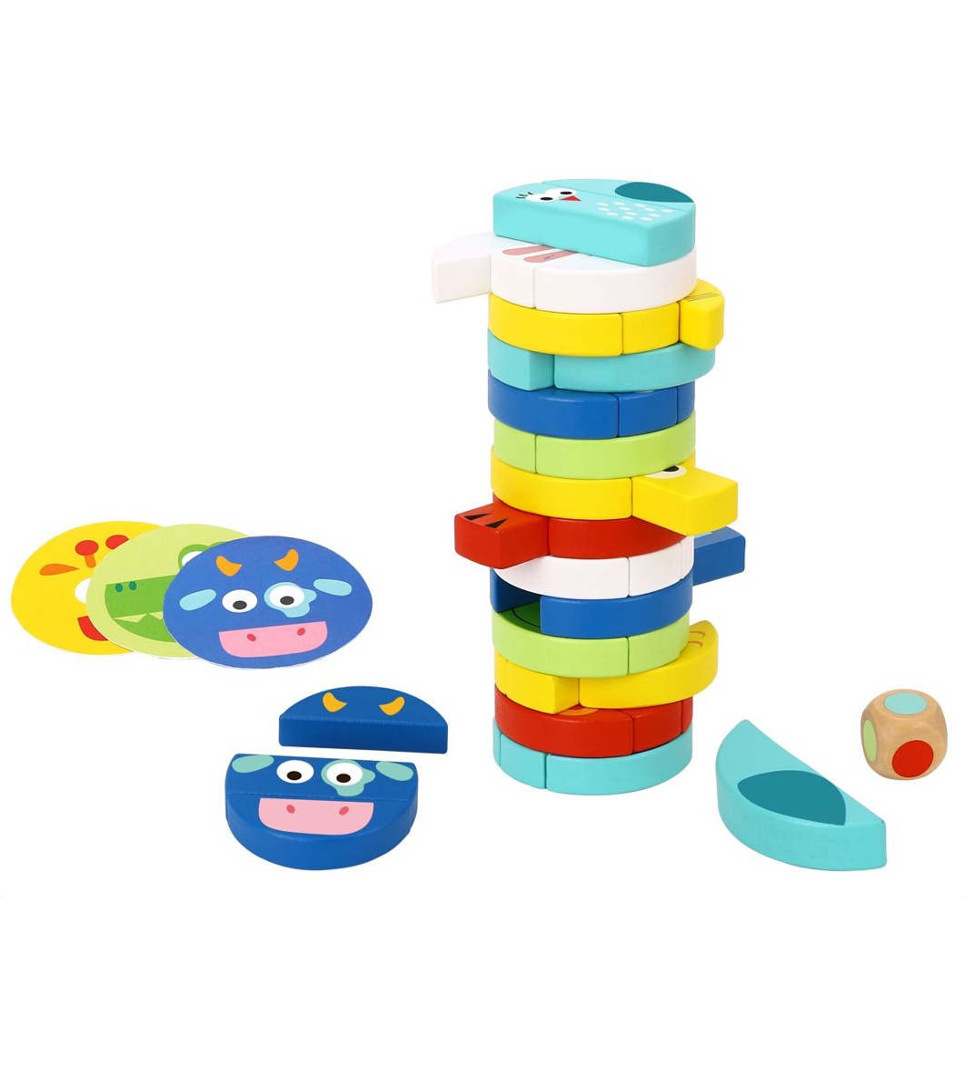 Siguranță: respectă standardul EN71 și folosește vopsele non-toxice. Tooky Toy - Jenga din lemn cu animale nu este doar un joc, ci un instrument de învățare prin joacă care distrează și educă. Potrivit pentru a fi jucat acasă, la grădiniță sau ca și cadou pentru micii exploratori.