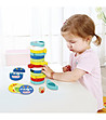 Jenga cu valoare educativă care dezvoltă abilitățile motorii, concentrarea și răbdarea copiilor. Acest turn fermecător de stivuit cu animale va atrage atenția celor mici cu culorile sale vii, ilustrațiile vesele și elementul interactiv cu zaruri și cărți.