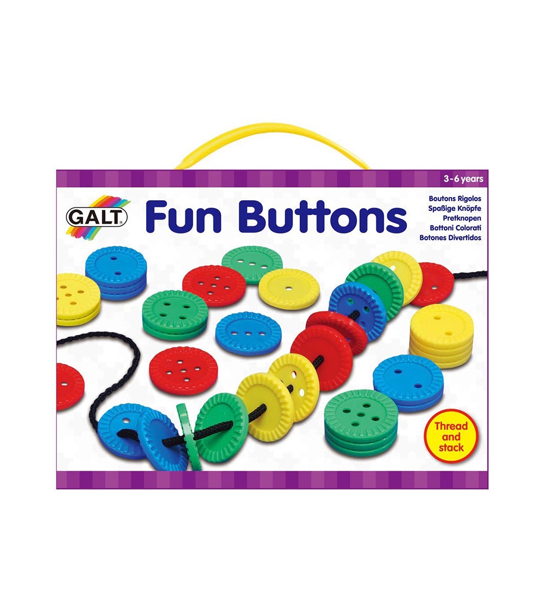Fabricat în 4 culori diferite cu 5 opțiuni diferite de găuri și frânghie. Butoanele au margini zimțate, astfel încât sunt ușor de stivuit. Joc extrem de util pentru abilitățile motorii, coordonarea ochi-mână și dexteritatea copiilor.