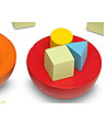 Fii pregătit! Concentrează-te! Luați o parte colorată de formă și culoare diferită și plasați-o pe emisferă.