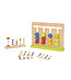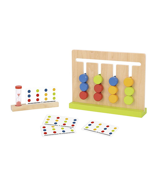 Există o tablă, cu patru rânduri, cu trei nasturi colorați în fiecare. Setul include 15 carti cu 30 de combinatii si o clepsidra. Copiii trebuie să aranjeze combinația cărții pe care le-au extras înainte ca ceasul să se termine.